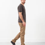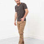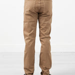 Richly dyed cotton sets off cleanly styled, incredibly soft pants cut with a straight leg and classic five-pocket style by Homecore. Color Sand. 98% Cotton, 2% Lycra. Made in Portugal. Jacob os wearing a 34.